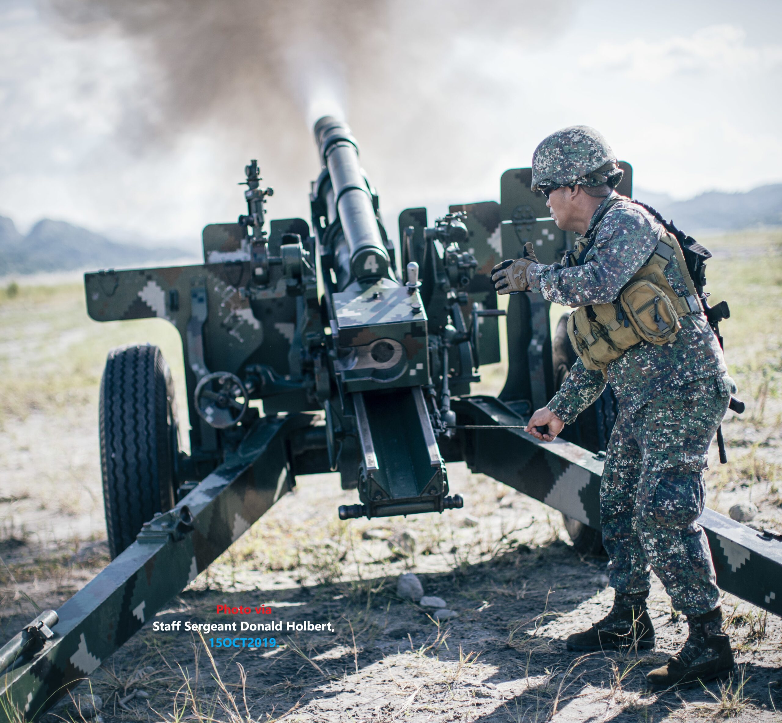 U.S. World War Two era M101 105-millimeter (105mm) ‘howitzer’ (short gun tube [barrel] artillery) still in use by Philippines.