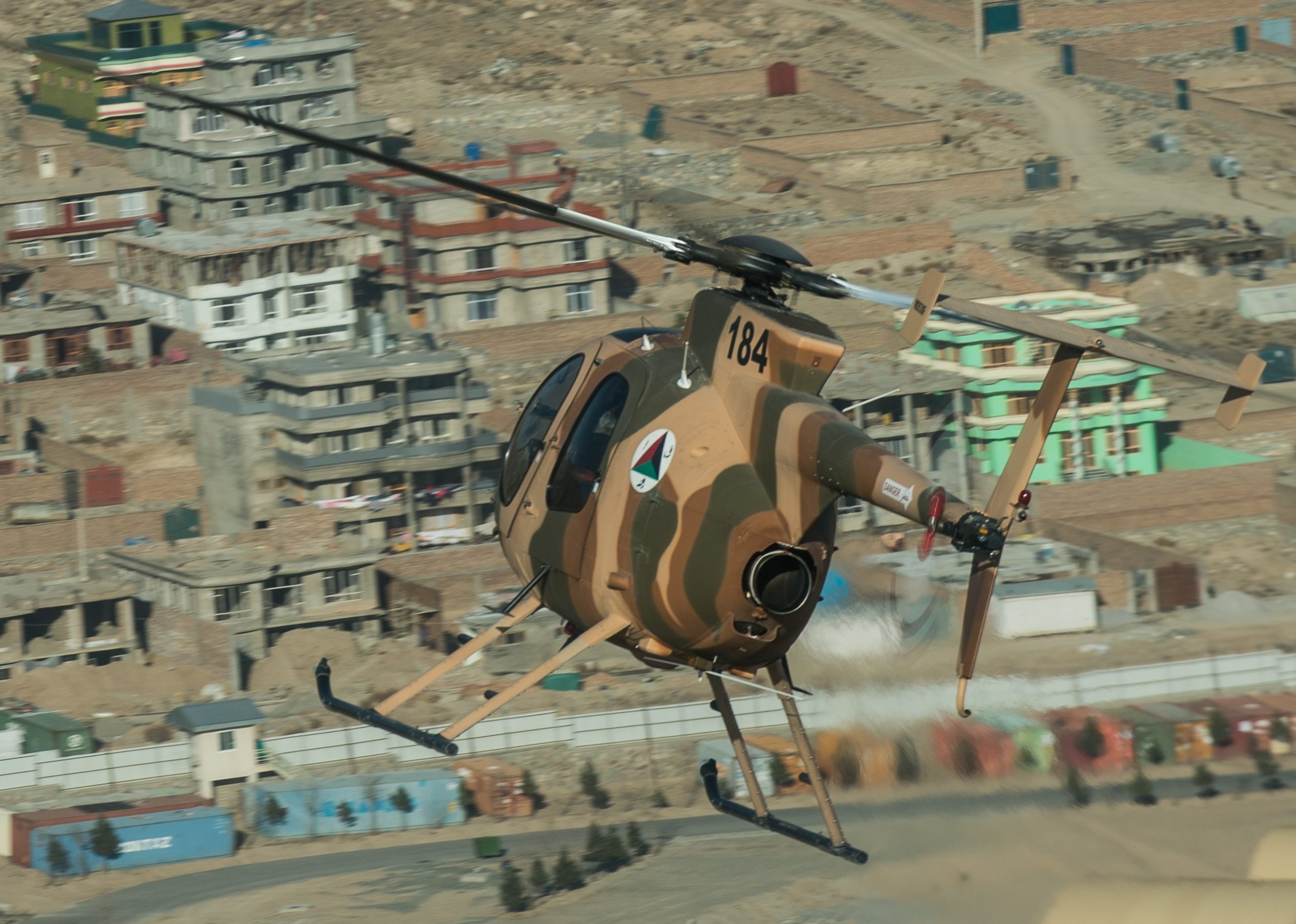 MD-530F Cayuse Warrior flies over Kabul, 06DEC2014. U.S. Air Force photo by Staff Sergeant Perry Aston.