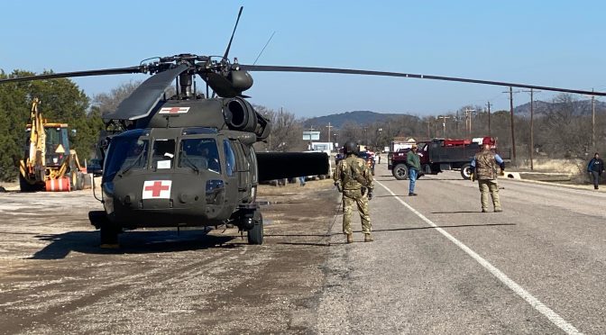 Texas Army National Guard delivers food and water in response to winter storm, 20FEB2021, near Camp Wood.