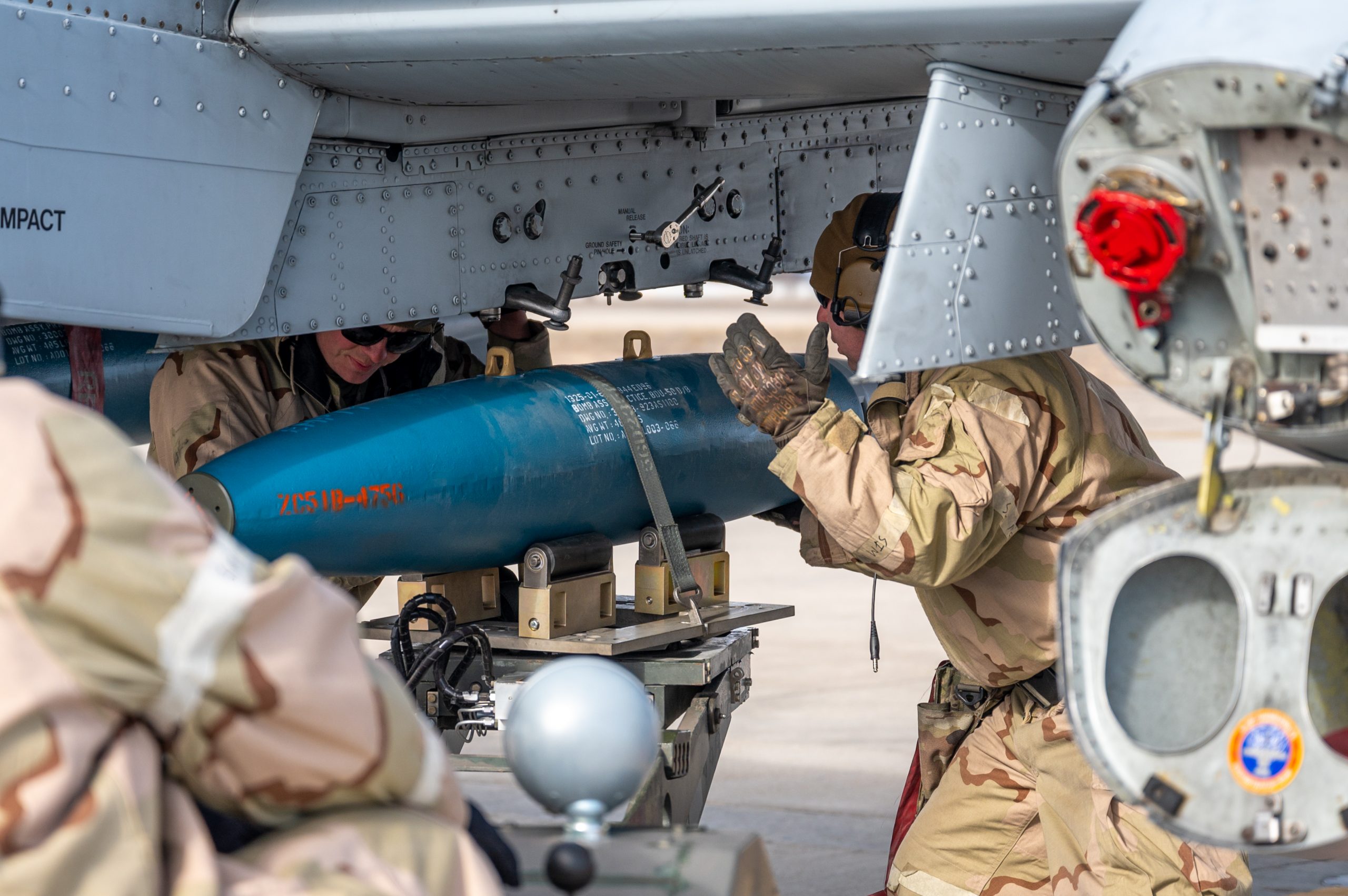 Inert Blue Bombs prepped for Idaho A-10C’s combat turns. Idaho Air National Guard photo by Staff Sergeant Mercedee Wilds, 02FEB2022.