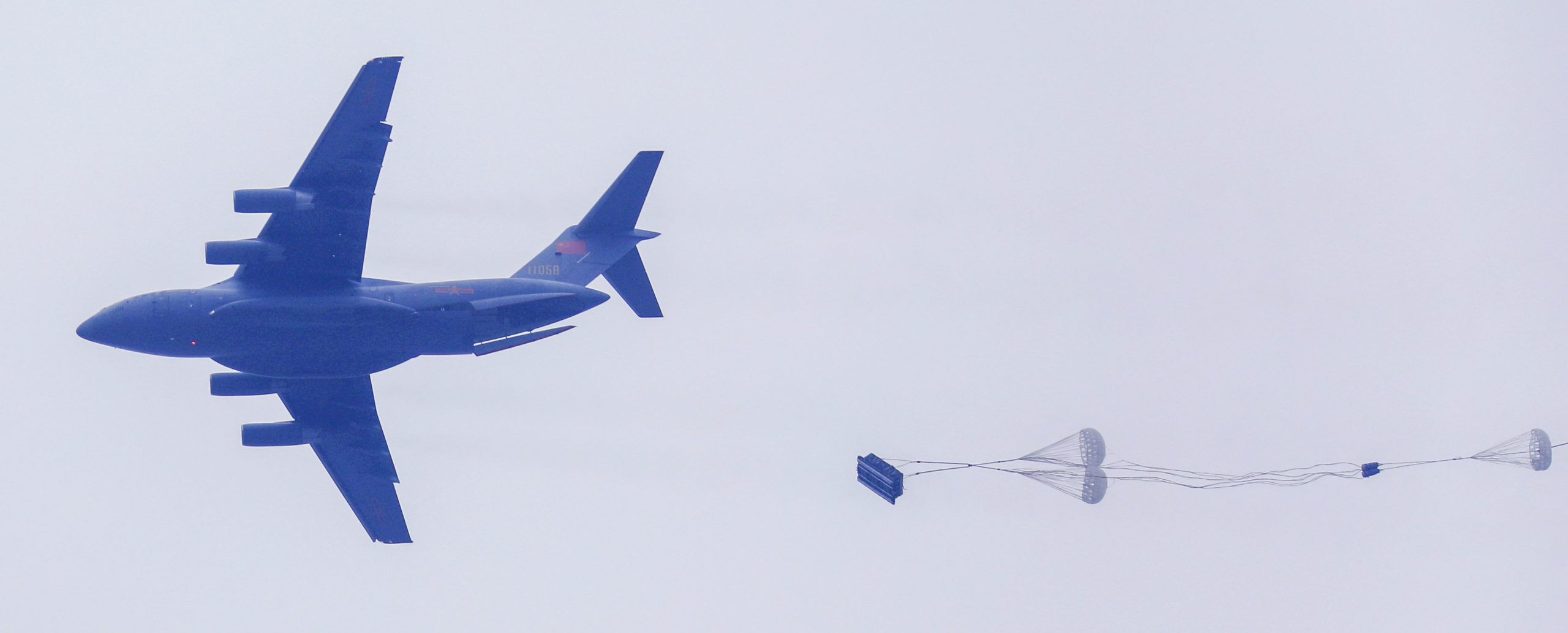 Paratroopers jump from a perfectly good Y20, 17FEB2022. People’s Liberation Army photo by Liu Bingbing.