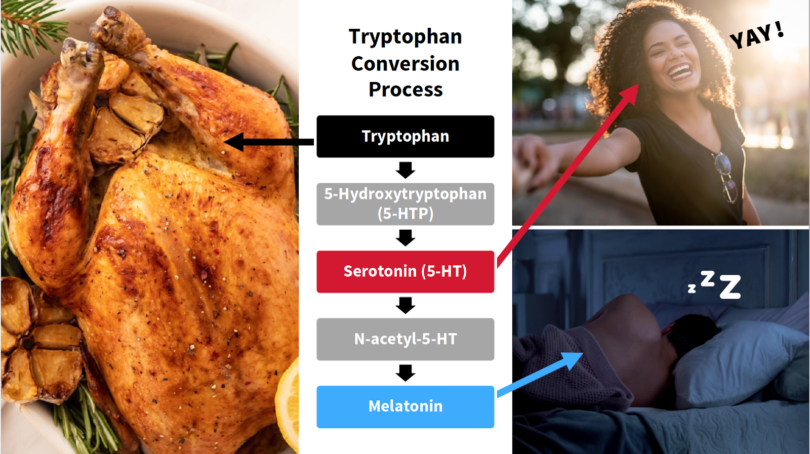 The latest USN announcement comes at an opportune time, as many people in the United States (U.S.) will be celebrating Tryptophan consumption during the U.S. holiday known as Thanksgiving. Tryptophan is the amino acid necessary to produce Serotonin and Melatonin. Thanksgiving Turkeys are supposed to be loaded with Tryptophan. One study showed that fruit-flies became sleepy after munching down on Tryptophan, however there haven’t been any studies to prove it actually boosts Serotonin/Melatonin in humans.